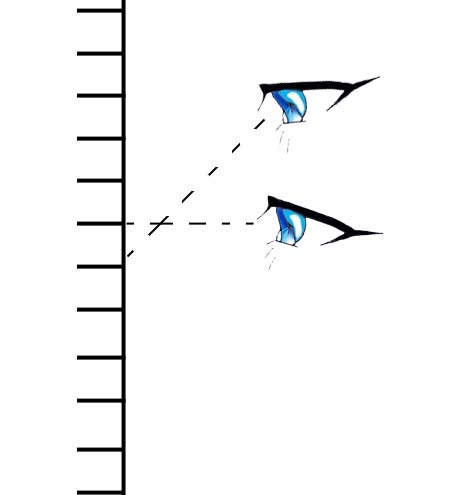 たとえば観測点の違いにより、対象点の方向が異なる。これを視差という。