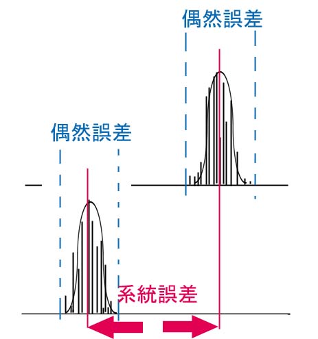 測定において過失が無いが、測定器自体のバラつき、経時変化などにおける実験条件のバラつきによって起こる。